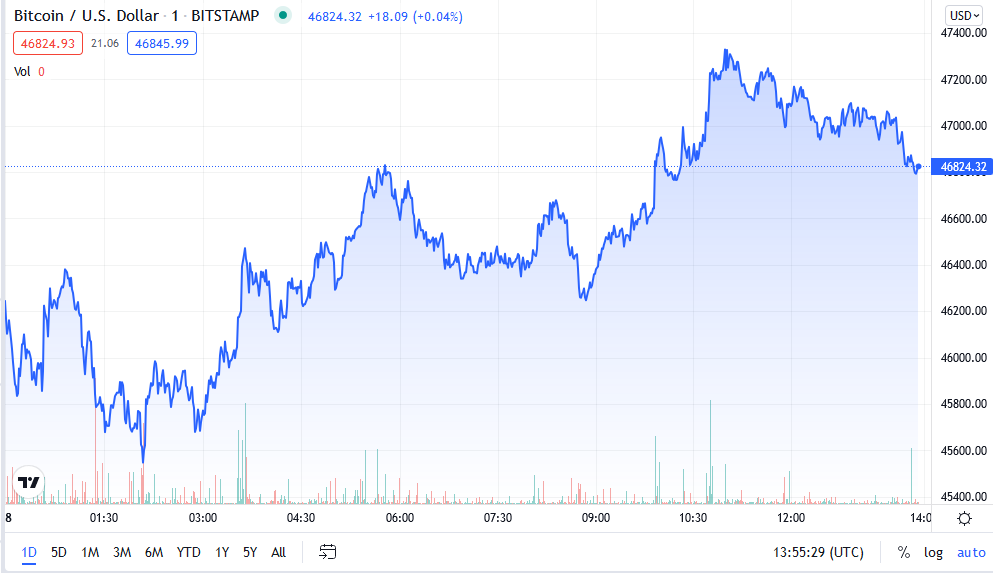 كانت البيتكوين تتجه نحو المنطقة الخضراء في نهاية الأسبوع الماضي عندما تجاوز السعر 50000 دولار يوم الأحد، وقد منح هذا السوق بعض الراحة وجلب الأمل في أن الوقت قد حان للانتعاش، ولكن تحولت الأسواق إلى الاتجاه العكسي، ليصبح كل شيء باللون الأحمر، ففي يوم الاثنين انخفضت العملة الرقمية الرائدة إلى قرابة 46 ألف دولار.
