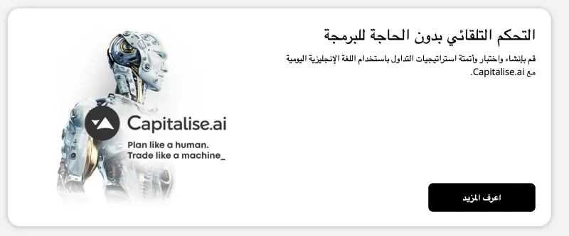 يمكن للمستثمرين العرب التداول على اثنين من الأدوات الأكثر تطورًا، وهما ميتاتريدر 4 وميتاتريدر5، وكلا المنصتين متاحتان باللغة العربية. وبمساعدة Capitalise.ai لاستراتيجيات التداول بدون كود وTradingView للتحليل البياني، يمكن للمتداولين أن يكونوا نشطين في السوق في أي وقت ويكونوا قادرين على اتخاذ قرارات استنادًا إلى العوامل المؤثرة في الأسعار.